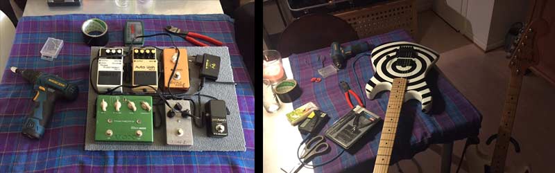 Letzte Vorbereitungen für die Dossche-Gigs am 23. in Hannover und am 24. in Köln. Kabel, Elektronik, neue Saiten, alles will gecheckt sein! Ich freue mich sooooo!!!!!