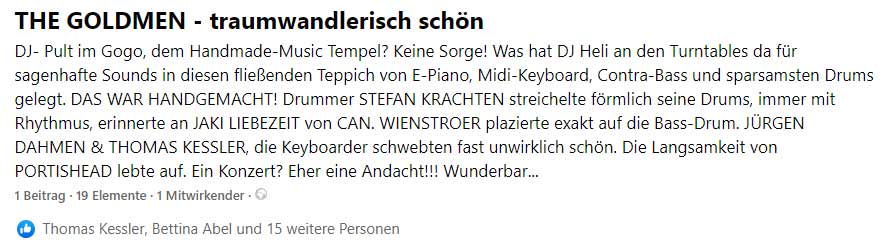 Am Sonntag, den 22. Oktober, spielten wir eine Session im Cafe A Gogo. Peter Kallen, (Inhaber des Cafes A Gogo in Düsseldorf), hatte geladen: Ufo/Kirschgen/Dahmen – Fusion mit Special Guest DJ Heli.